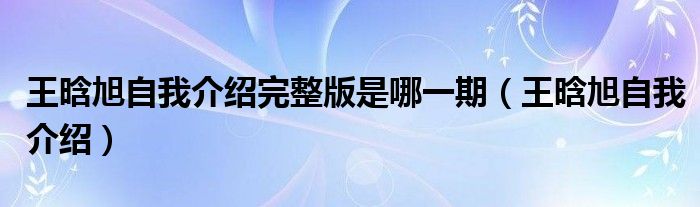 大家好,小晋来为大家解答以下问题,关于王晗旭自我介绍完整版是哪一期,王晗旭自我介绍很多人还不知道,今天让我们一起来看看吧!