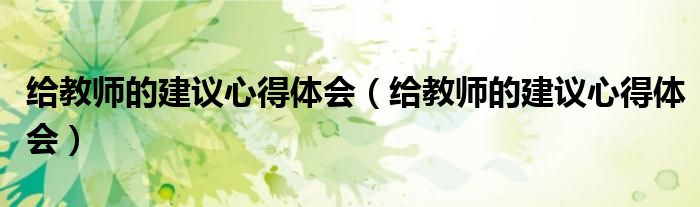 关于给教师的建议心得体会,给教师的建议心得体会这个很多人还不知道,今天菲菲来为大家解答以上的问题,现在让我们一起来看看吧!