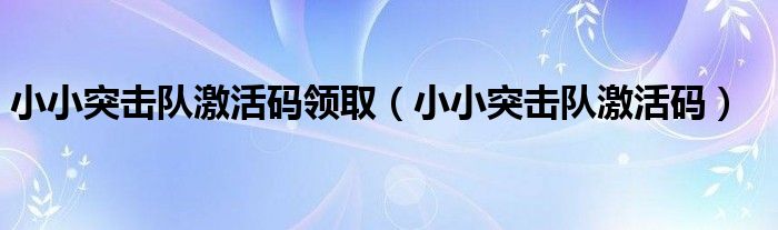 关于小小突击队激活码领取,小小突击队激活码这个很多人还不知道,今天菲菲来为大家解答以上的问题,现在让我们一起来看看吧!