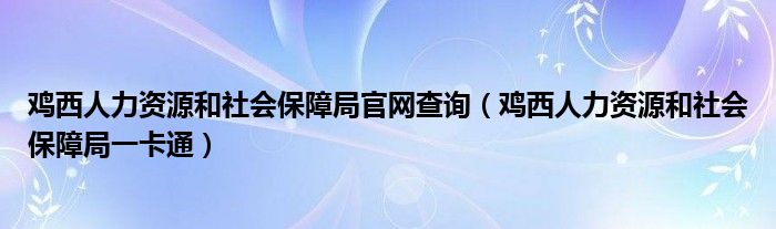 关于鸡西人力资源和社会保障局官网查询,鸡西人力资源和社会保障局一卡通这个很多人还不知道,今天菲菲来为大家解答以上的问题,现在让我们一起来看看吧!