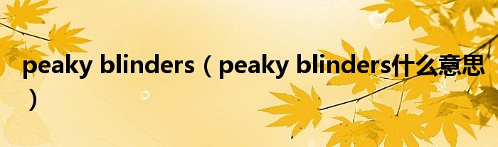 关于peaky blinders,peaky blinders什么意思这个很多人还不知道,今天菲菲来为大家解答以上的问题,现在让我们一起来看看吧!
