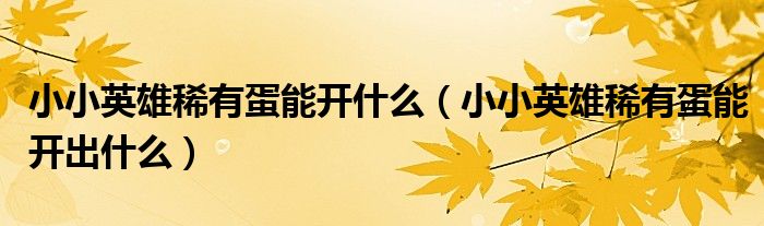 关于小小英雄稀有蛋能开什么,小小英雄稀有蛋能开出什么这个很多人还不知道,今天菲菲来为大家解答以上的问题,现在让我们一起来看看吧!