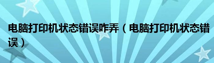 关于电脑打印机状态错误咋弄,电脑打印机状态错误这个很多人还不知道,今天菲菲来为大家解答以上的问题,现在让我们一起来看看吧!