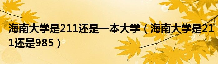 关于海南大学是211还是一本大学,海南大学是211还是985这个很多人还不知道,今天菲菲来为大家解答以上的问题,现在让我们一起来看看吧!