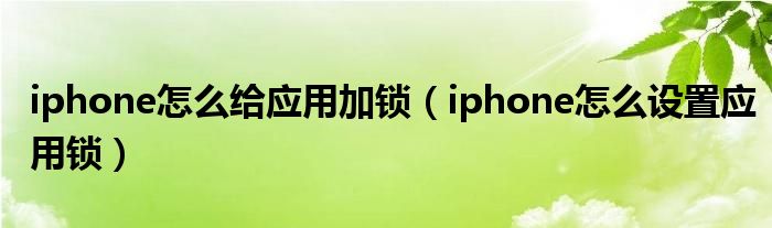 iphone怎么给应用加锁(iphone怎么设置应用锁)