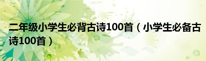 关于二年级小学生必背古诗100首,小学生必备古诗100首这个很多人还不知道,今天菲菲来为大家解答以上的问题,现在让我们一起来看看吧!