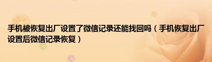 关于手机被恢复出厂设置了微信记录还能找回吗,手机恢复出厂设置后微信记录恢复这个很多人还不知道,今天菲菲来为大家解答以上的问题,现在让我们一起来看看吧!