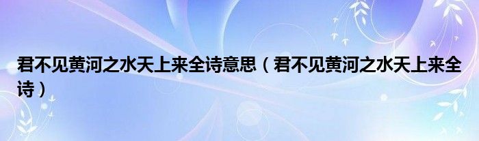 关于君不见黄河之水天上来全诗意思,君不见黄河之水天上来全诗这个很多人还不知道,今天菲菲来为大家解答以上的问题,现在让我们一起来看看吧!