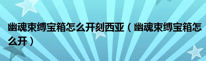 关于幽魂束缚宝箱怎么开刻西亚,幽魂束缚宝箱怎么开这个很多人还不知道,今天菲菲来为大家解答以上的问题,现在让我们一起来看看吧!
