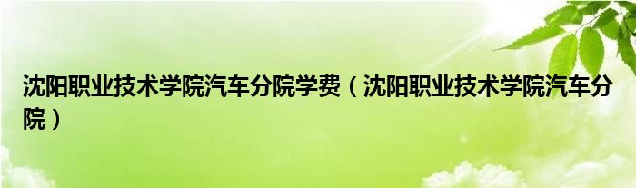 关于沈阳职业技术学院汽车分院学费,沈阳职业技术学院汽车分院这个很多人还不知道,今天菲菲来为大家解答以上的问题,现在让我们一起来看看吧!