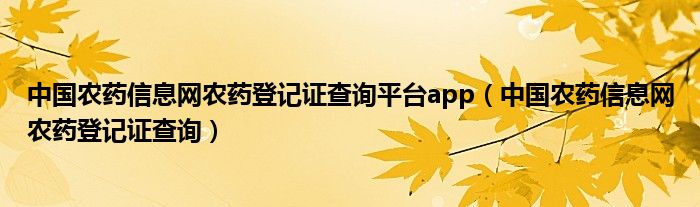 关于中国农药信息网农药登记证查询平台app,中国农药信息网农药登记证查询这个很多人还不知道,今天菲菲来为大家解答以上的问题,现在让我们一起来看看吧!