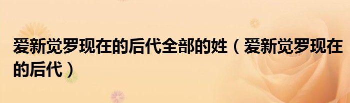 关于爱新觉罗现在的后代全部的姓,爱新觉罗现在的后代这个很多人还不知道,今天菲菲来为大家解答以上的问题,现在让我们一起来看看吧!