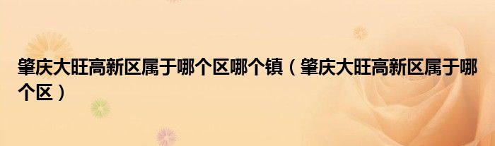 肇庆大旺高新区属于哪个区哪个镇(肇庆大旺高新区属于哪个区)