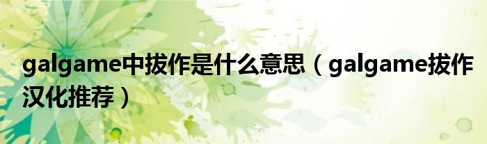 关于galgame中拔作是什么意思,galgame拔作汉化推荐这个很多人还不知道,今天菲菲来为大家解答以上的问题,现在让我们一起来看看吧!