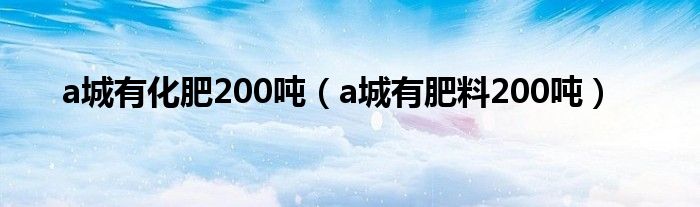 关于a城有化肥200吨,a城有肥料200吨这个很多人还不知道,今天菲菲来为大家解答以上的问题,现在让我们一起来看看吧!