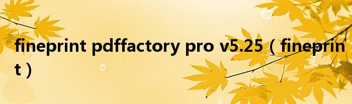 大家好,小小来为大家解答以下问题,fineprint pdffactory pro v5.25,fineprint很多朋友还不知道,现在让我们一起来看看吧!