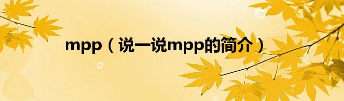 夏弥来为大家解答以下的问题,mpp,说一说mpp的简介,现在让我们一起来看看吧!