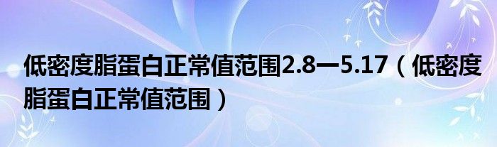 关于低密度脂蛋白正常值范围2.8一5.17,低密度脂蛋白正常值范围这个很多人还不知道,今天菲菲来为大家解答以上的问题,现在让我们一起来看看吧!