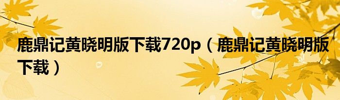 鹿鼎记黄晓明版下载720p(鹿鼎记黄晓明版下载)