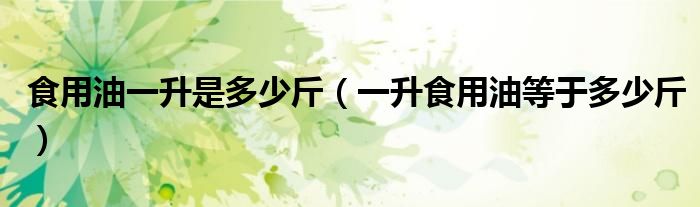 关于食用油一升是多少斤,一升食用油等于多少斤这个很多人还不知道,今天菲菲来为大家解答以上的问题,现在让我们一起来看看吧!