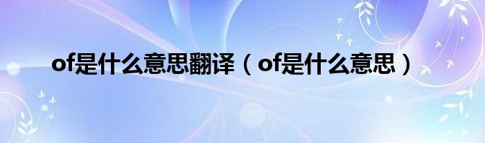 关于of是什么意思翻译,of是什么意思这个很多人还不知道,今天菲菲来为大家解答以上的问题,现在让我们一起来看看吧!