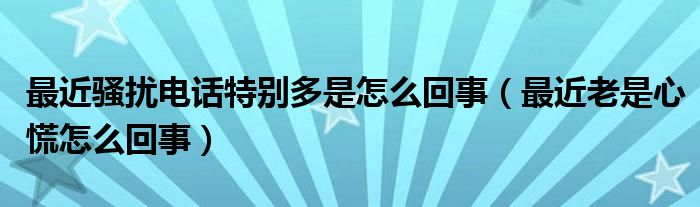 大家好,乐天来为大家解答以下的问题,最近骚扰电话特别多是怎么回事,最近老是心慌怎么回事很多人还不知道,现在让我们一起来看看吧!