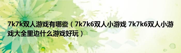 关于7k7k双人游戏有哪些,7k7k6双人小游戏 7k7k6双人小游戏大全里边什么游戏好玩这个很多人还不知道,今天菲菲来为大家解答以上的问题,现在让我们一起来看看吧!
