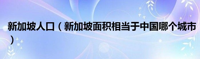 关于新加坡人口,新加坡面积相当于中国哪个城市这个很多人还不知道,今天菲菲来为大家解答以上的问题,现在让我们一起来看看吧!