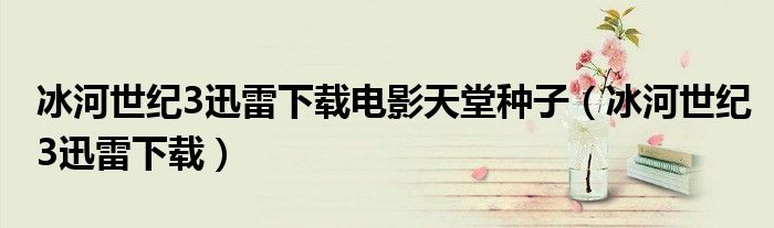 关于冰河世纪3迅雷下载电影天堂种子,冰河世纪3迅雷下载这个很多人还不知道,今天菲菲来为大家解答以上的问题,现在让我们一起来看看吧!