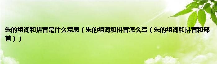 大家好,综合小编来为大家讲解下朱的组词和拼音是什么意思,朱的组词和拼音怎么写,朱的组词和拼音和部首这个很多人还不知道,现在让我们一起来看看吧!