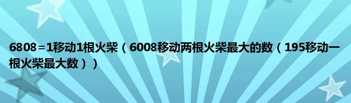 6808=1移动1根火柴(6008移动两根火柴最大的数(195移动一根火柴最大数))
