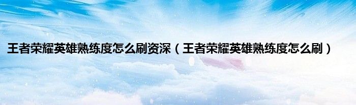 王者荣耀英雄熟练度怎么刷资深(王者荣耀英雄熟练度怎么刷)