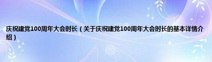 庆祝建党100周年大会时长(关于庆祝建党100周年大会时长的基本详情介绍)