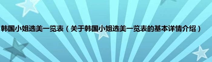 韩国小姐选美一览表(关于韩国小姐选美一览表的基本详情介绍)