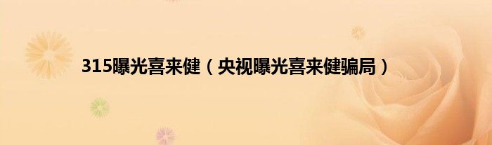 大家好,小问来为大家解答以上问题。315曝光喜来健,央视曝光喜来健骗局这个很多人还不知道,现在让我们一起来看看吧!