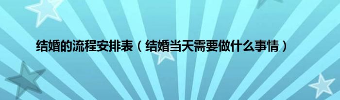 大家好,综合小编来为大家讲解下。结婚的流程安排表,结婚当天需要做什么事情这个很多人还不知道,现在让我们一起来看看吧!
