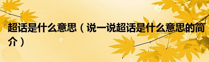 夏弥来为大家解答以下的问题,超话是什么意思,说一说超话是什么意思的简介,现在让我们一起来看看吧!