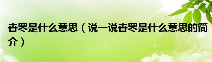 夏弥来为大家解答以下的问题,卋罖是什么意思,说一说卋罖是什么意思的简介,现在让我们一起来看看吧!