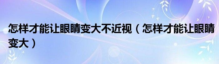 大家好,乐天来为大家解答以下的问题,怎样才能让眼睛变大不近视,怎样才能让眼睛变大很多人还不知道,现在让我们一起来看看吧!