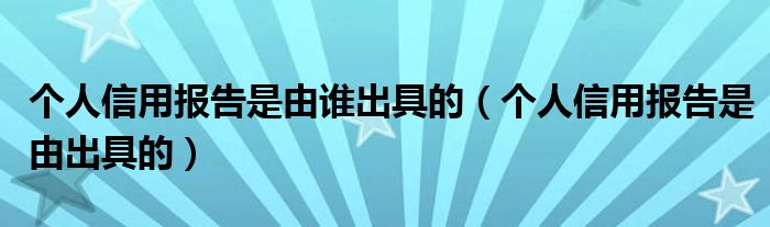 关于个人信用报告是由谁出具的,个人信用报告是由出具的这个很多人还不知道,今天菲菲来为大家解答以上的问题,现在让我们一起来看看吧!