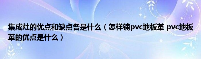 关于集成灶的优点和缺点各是什么,怎样铺pvc地板革 pvc地板革的优点是什么这个很多人还不知道,今天菲菲来为大家解答以上的问题,现在让我们一起来看看吧!