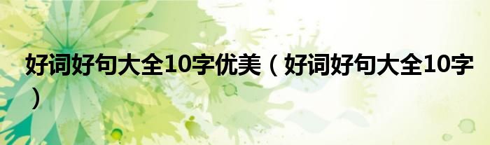 关于好词好句大全10字优美,好词好句大全10字这个很多人还不知道,今天菲菲来为大家解答以上的问题,现在让我们一起来看看吧!