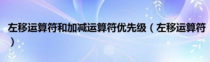 关于左移运算符和加减运算符优先级,左移运算符这个很多人还不知道,今天菲菲来为大家解答以上的问题,现在让我们一起来看看吧!