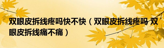 大家好,乐天来为大家解答以下的问题,双眼皮拆线疼吗快不快,双眼皮拆线疼吗 双眼皮拆线痛不痛很多人还不知道,现在让我们一起来看看吧!