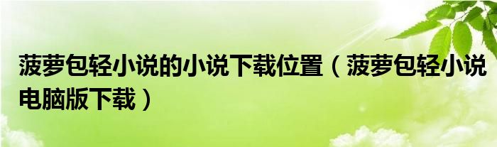 关于菠萝包轻小说的小说下载位置,菠萝包轻小说电脑版下载这个很多人还不知道,今天菲菲来为大家解答以上的问题,现在让我们一起来看看吧!