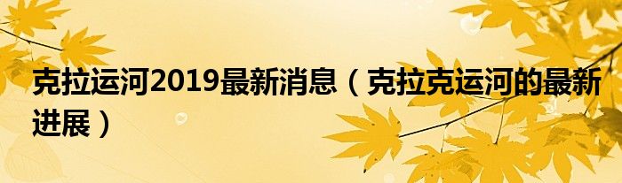 克拉运河2019最新消息(克拉克运河的最新进展)