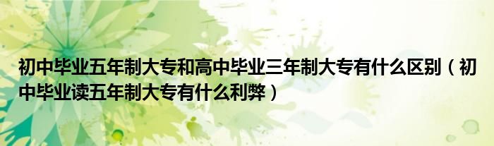 关于初中毕业五年制大专和高中毕业三年制大专有什么区别,初中毕业读五年制大专有什么利弊这个很多人还不知道,今天菲菲来为大家解答以上的问题,现在让我们一起来看看吧!