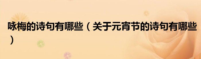 咏梅的诗句有哪些(关于元宵节的诗句有哪些)