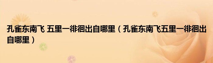 关于孔雀东南飞 五里一徘徊出自哪里,孔雀东南飞五里一徘徊出自哪里这个很多人还不知道,今天菲菲来为大家解答以上的问题,现在让我们一起来看看吧!