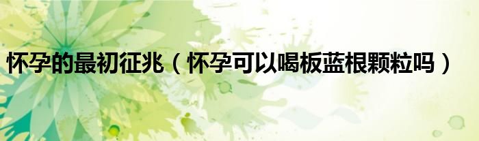 大家好,乐天来为大家解答以下的问题,怀孕的最初征兆,怀孕可以喝板蓝根颗粒吗很多人还不知道,现在让我们一起来看看吧!